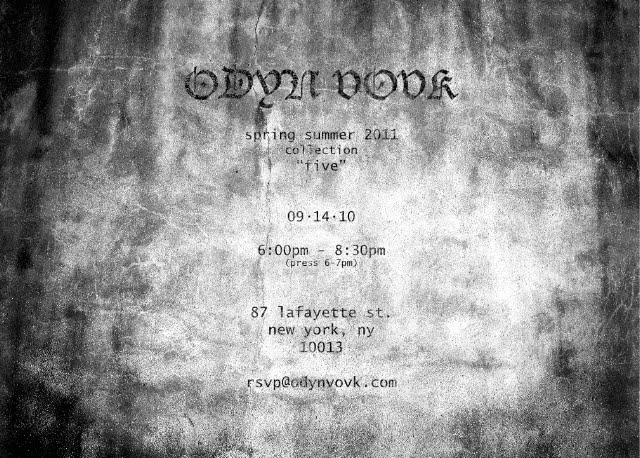 Wed evening I had my 'oh-so-chic' fashion week reporter Ms. Tanasha Mclaurin cover Odyn Vovk's Spring/Summer 2010 presentation. Indeed, it was quite the discovery.