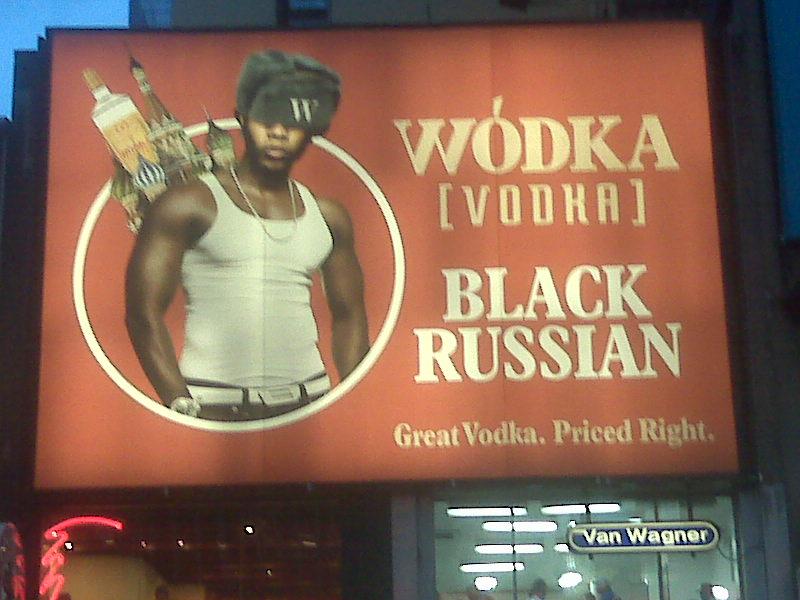 Cruising 7th Ave in Manhattan a few weekends ago, I thought my eyes were playing tricks on me. Intrigued via the cool graphics, I definitely did a double take. Yet am I the only person that believes this ad made a mockery out of black culture? ---Ha, obviously not because guess what!? In the time that it has taken me to write this article, this billboard along with all other web promotion on "Black Russia" has since been removed from welovevodka.com. It appears that the 'Black Russian' has been put to sleep. Hmmm, I wonder why?