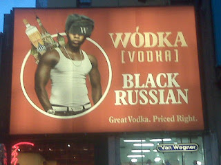 I"ll give it to em', they've got some invigorating ad's going on. Spotting this billboard on 34th and 7th had me thinking all weekend. The thugged-out black dude(esp when their name rhymes with rapper Woka Flaka) with the city of Russia tapered across his shoulder atleast made me wanna Goggle the folks and find out who they were. Yet after reading their description above, it kind of angers me that America's acceptance(if that's what you wanna call it) of black culture still has huge deals of mockery, exploitation, capitalization, and categorization. Based upon their Black Russian "theme" their number one fuck-up was mocking the black race and stereotyping the hell out of the culture. I see it as another part of institutionalized racism where America's trend hungry ass suddenly decides when something is "cool" and then exploits the hell out of it. This is exactly the same way that slavery was started(for those of you who forgot it even existed). Some 16th century money hungry *extremely-profuse-curseword* discovered the unique, undeniably strong traits of the African race and decided to capitalize off of their unique strengths without any regard to how they felt about it. *Shaking my head*.