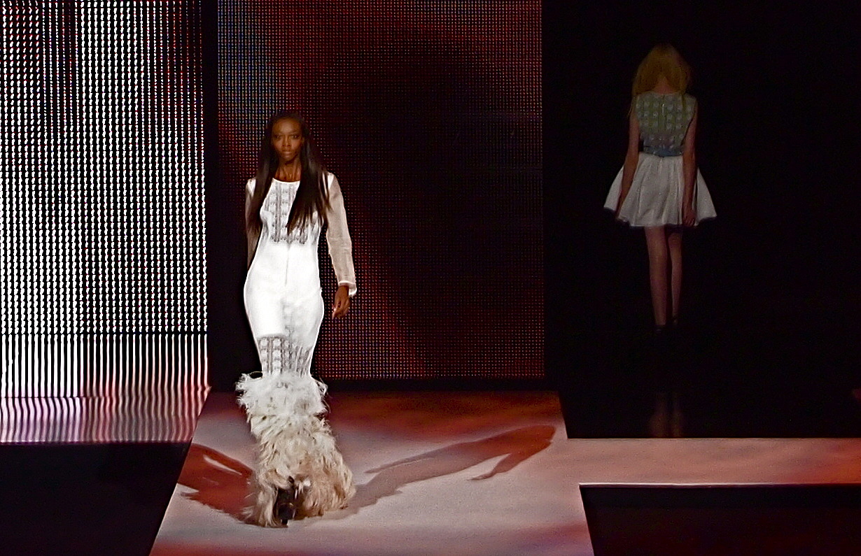 Above/Below: Top model Georgie Badiel struts in a Kluk CGTD design.