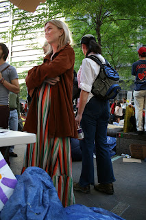 Back downtown, and well blended amongst a melting pot of grungy homeless folk, government greed opposition, and conspiracy theory advocates lies a stylish assembly of protesters, passerby's and respect seeking rebels. We didn't find it too hard to finagle through Zucotti Park and love on our favorite mixes and matches over the weekend. The folks that caught our eye were more then likely the visiting activist, artist, and crowd passer's rolling through. Trendy chicness that caused them to standout above any shoddy over-night campers. As you'll see below, most looks were proceeded by an affluence of vintage rags, bohemians fabrics and crude colors.