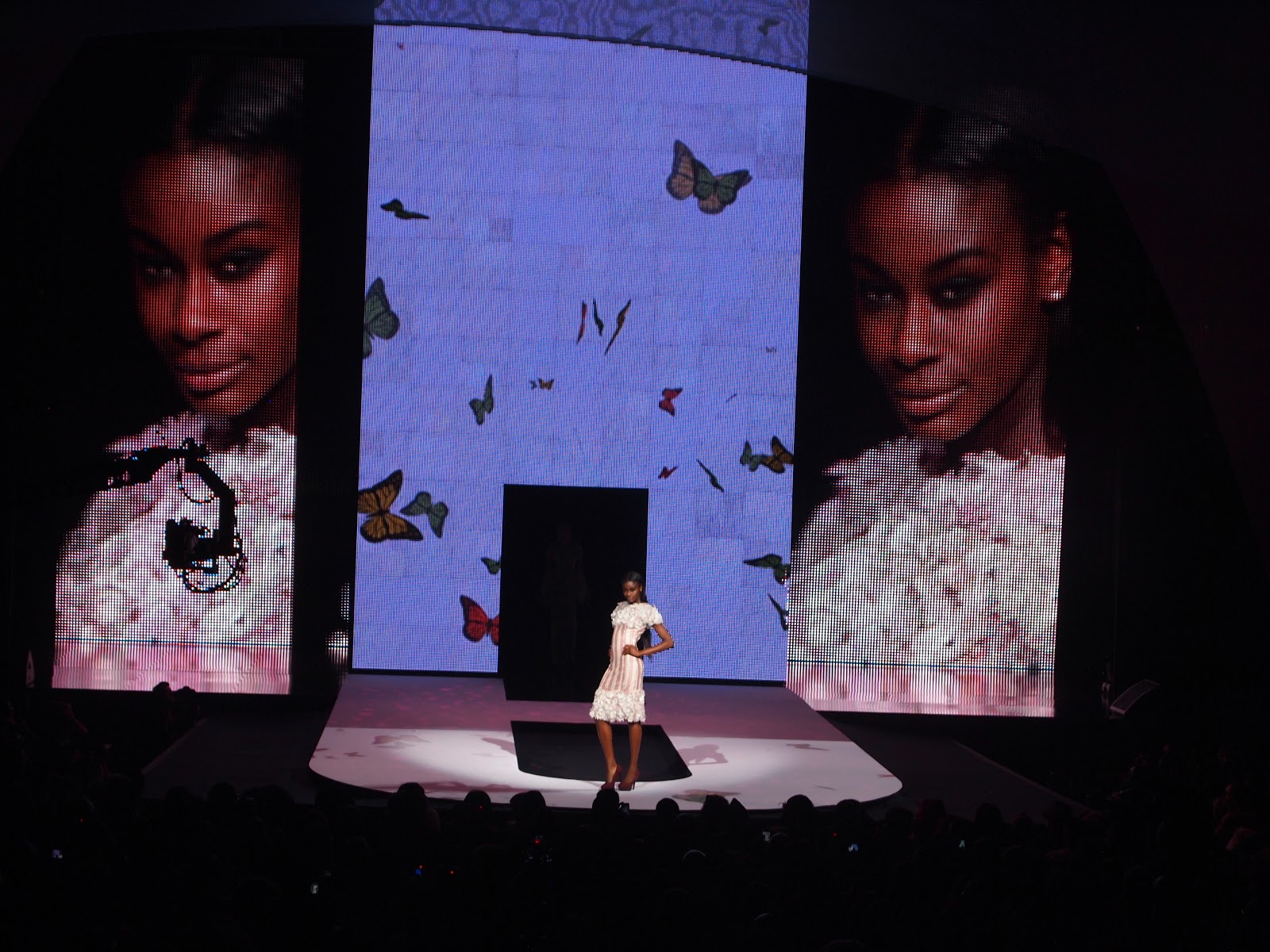 Lanre Da Silva’s work left a fluttering sensation in our bellies that had nothing to do with the computer animated butterflies festooning the gigantic LCD runway backdrops, or with her heart stopping spill in curtain call. In a night (and an all around Spring season) littered with eye catching prints, her focus on texture was a welcome surprise.